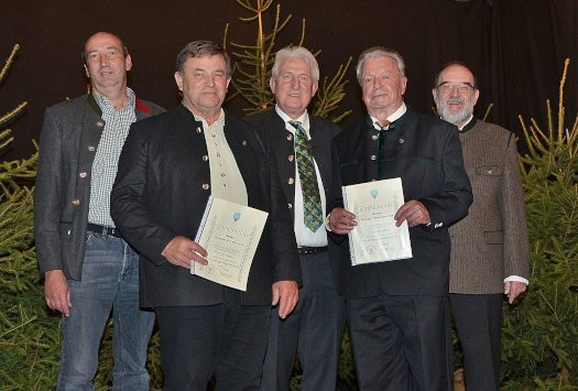 Bei der Ehrung für 50 und 60 Jahre Mitgliedschaft(v.l.): Martin Braun, Johann Drexler (50 Jahre), Rudi Engelhard, Hubert Randlshofer (60 Jahre) und Walter Ulrich.
