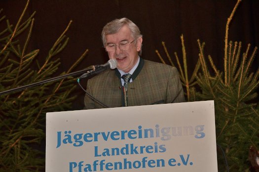 Die Veranstaltung eröffnete Rudi Engelhard als Vorsitzender der Jägervereinigung Pfaffenhofen zum 27. und damit letzten Mal, denn er wird bei für die kommende Wahlperiode nicht mehr für das Führungsamt kandidieren. Engelhard merkte an, dass die Mitgliederzahl der Jägervereinigung konstant nach oben gehe. Weiterhin an Umfanz zunehmen würden diverse Störungen der Jagdausübung. Engelhard nannte explizit Geocacher, die eine Art moderner Schnitzeljagd mit Navigationsgeräten ausüben, und Quadrocoper-Flieger, die mit ihren Fluggeräten die freilebenden Tiere verscheuten.