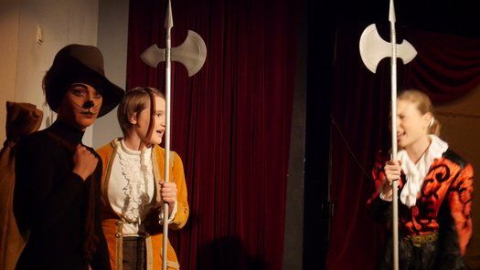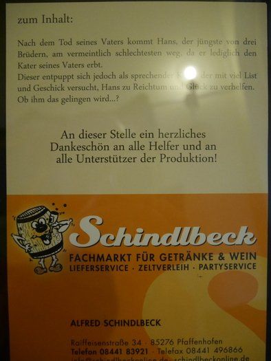 Man muß schon 37 Jahre in den Annalen des Theaterspielkreises Pfaffenhofen zurückblättern um dieses herrliche Stück der Gebrüder Grimm auf den Spielplan zu entdecken. War damals noch ein degenschwingendes, männliches Musketier die Hauptfigur, so ist diesmal herrlich schmusige Weiblichkeit (Marion Simon) mit schnurrender Stimme, die Hauptfigur auf der Bühne.