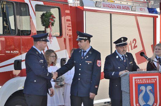 Als Kommandant Georg Pfab den Vergleich zwischen dem alten Tragkraftspritzenfahrzeug (bei dem im Jahr 2013 ein wirtschaftlicher Totalschaden festgestellt worden war) und dem neuen Löschfahrzeug zog, äußerte er zugleich die Meinung seiner aktiven Kräfte: „Dazwischen liegen Welten.“ ´Pfab betonte ausdrücklich, nicht zu übersehen, dass in erster Linie nicht die Feuerwehr ein neues Fahrzeug erhalten habe, sondern der Markt Reichertshofen und damit die Bürger von Winden. Der Kommandant erinnerte in seiner Rede an die vielen Stunden der Planung, die eine eigene Arbeitsgruppe erledigte. Im Ergebnis habe man mit dem 7,49 Tonnen schweren MLF einen „Volltreffer“ gelandet. Einige sagten zwar, es habe viel Schnick-Schnack, doch „wir legten bei der Ausstattung unter anderem sehr viel Wert auf die passive Sicherheit.“ So habe es etwa Blaulichter ringsum, reflektierende Heckleuchtstreifen, ein verstärktes Fahrgestell und eine Umfeldbeleuchtung. Durch einen 600 Liter fassenden Löschwassertank samt 60 Liter Schaummitteltank hätten sich auch die Einsatzmöglichkeiten erweitert.