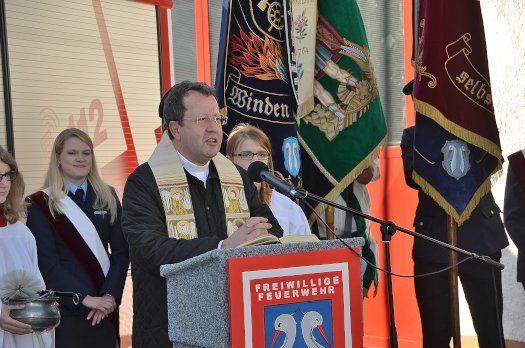 Von einer zeitgemäßen und professionellen Herangehensweise der Gemeinde im Hinblick auf die Feuerwehrangelegenheiten sprach auch Pfarrer Schwertfirm bevor er die Segnung vornahm. Auch Kreisbrandmeister Klaus Reiter bemerkte in seinem Grußwort, dass das Fahrzeug in erster Linie für die Bevölkerung und deren Schutz angeschafft worden sei, während es die Floriansjünger „nur“ bedienten.