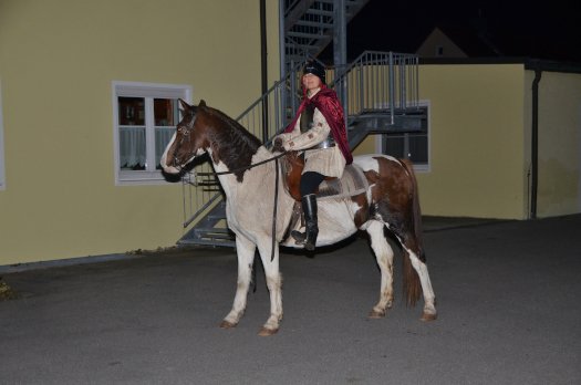 Auch heuer war wieder - mit viel Mühe von der Elternvertretung des Kindergartens Spatzennest organisiert - ein leibhaftiges Pferd mit perfekt als Soldat verkleideter Reiterin beim St. Martinszug in Reichertshofen dabei. Der lichterreiche Zug vieler Kinder aus dem örtlichen Kindergarten Spatzennest endete im Garten des Seniorenzentrums, wo dessen Bewohner bereits auf die Ankunft der Kleinen warteten.