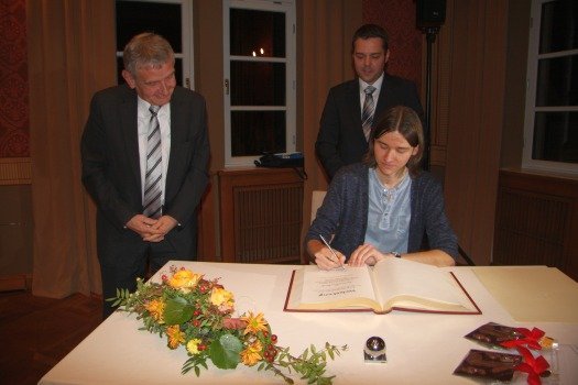 Kilian Brock trägt sich in das Goldene Buch der Stadt ein