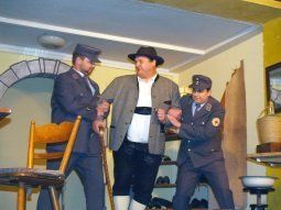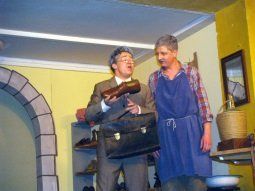 Sein Schuhmachergeselle Wastl (Sebastian Nieder) unterstützt seinen Meister nach Kräften, nicht ohne dabei ungewollt Verwirrung zu stiften. Als Engel in der Not erscheint die verflossene Liebe von Thomas Nothaas, Regina Schönbichler (Silvana Wolf) und ist natürlich überglücklich weil ihr Liebster doch nicht tot ist. Ein Missverständnis gibt das andere und nachdem der zuständige Gendarm (Johannes Kotzer) auch auf der Leitung steht, werden zwei tatkräftige Sanitäter (Florian Petz und Fabian Raith) und der verrückte Psychodoktor (Max Grünberger) zu Hilfe geholt. Daneben gibt es noch die aus dem Jungfrauenbund entsprungene Tochter des Ochsenbauern Zenzl (Lisa Fischbacher), die in jedem Mann einen potentiellen Ehemann für sich sieht. Schließlich und endlich kann Kriminalkommissar Grill (Alois Faltermeier) die Irrungen und Wirrungen doch noch aufklären. Eine sehr gelungene Aufführung, die den Zuschauern viele Lacher beschert.