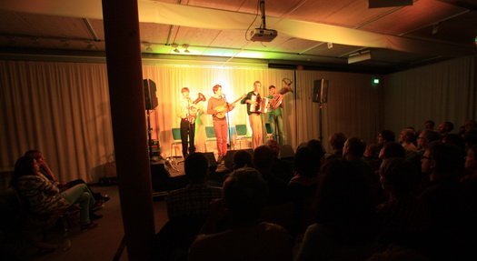… eines is‘ g’wies: Mit Kofelgschroa erlebte das Publikum in Wolnzach am Samstag eine junge Band auf dem Weg zur Weltmacht. Eine Mischung aus urbayrischem Lebensgefühl, modernster Spielfreude und –qualität ergibt bei den vier Oberammergauern eine Musik, die mit ihrem Niveau sprachlos macht, verblüfft, und den Beifall nicht enden lässt.