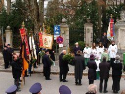 Nach dem Gedenkgottesdienst in der Pfarrkirche St. Vitus fand ein Kirchenzug mit den Vereinen und Abordnungen zum Kriegerdenkmal an der Hauptstraße statt. Die Krieger- und Reservistenkameradschaft legte zwei Kränze nieder und gedachte damit der Gefallenen aus dem 1. und 2. Weltkrieg. Gestaltet wurde die Gedenkfeier von Pfarrer Berthold Heller und musikalisch begleitet von der Marktkapelle Au und der Liedertafel Au.
