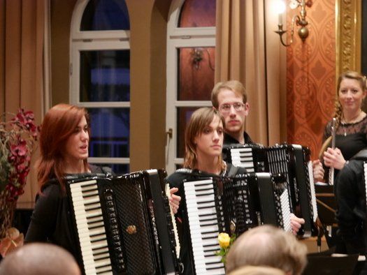 Beendet wurde der Reigen mit „Libertango“, ein wahrhaft rassischer Tango, der dem Publikum ordentlich in die Beine ging. Der Rathaussaal wurde bis an die Grenzen seiner räumlichen Belastbarkeit genutzt. Wenn so große Orchester aufspielen bleibt meist kaum mehr Platz für die Zuhörer.