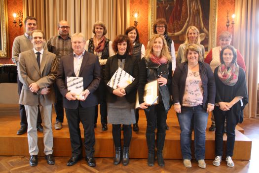 Gemeinsam mit dem Personalratsvorsitzenden Jürgen Regau, der auch im Namen aller Kolleginnen und Kollegen gratulierte, überreichte der Bürgermeister den langjährigen Mitarbeitern Geschenke und Obstkörbe.