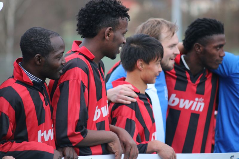 Am Samstag hatte Betreuer Mohamed Ben Said Flüchtlinge aus Afghanistan, Syrien, Somalia, dem Sudan, aus Niger, Tunesien, Eritrea, Sierra Leone, dem Kongo und aus Mali im Kader! Fußballerisches Talent war unübersehbar, wenn auch Schwierigkeiten in der Ballbehandlung auf dem ungewohnten Kunstrasen ebenso wie die unzureichende Abstimmung untereinander in manchen Situationen unverkennbar waren. Rein unter dem Aspekt der Kommunikation untereinander muss man berücksichtigen, dass die Flüchtling je nach Herkunft englisch, französisch oder arabisch sprechen. Der diesbezügliche Vorteil lag auf Seiten des SV Ilmmünster: taktische Absprachen auf bayrisch hat gewiss keiner der Gegner verstanden! Als Schiedsrichter hatte sich niemand geringerer als der Obmann der Schiedsrichtergruppe Pfaffenhofen, Albert Schnell, bei diesem Kontinentalspiel angeboten. Mit der bei allem Einsatz fairen Spielweise aller Beteiligter hatte er über die gesamten 90 Minuten keinerlei Schwierigkeiten.