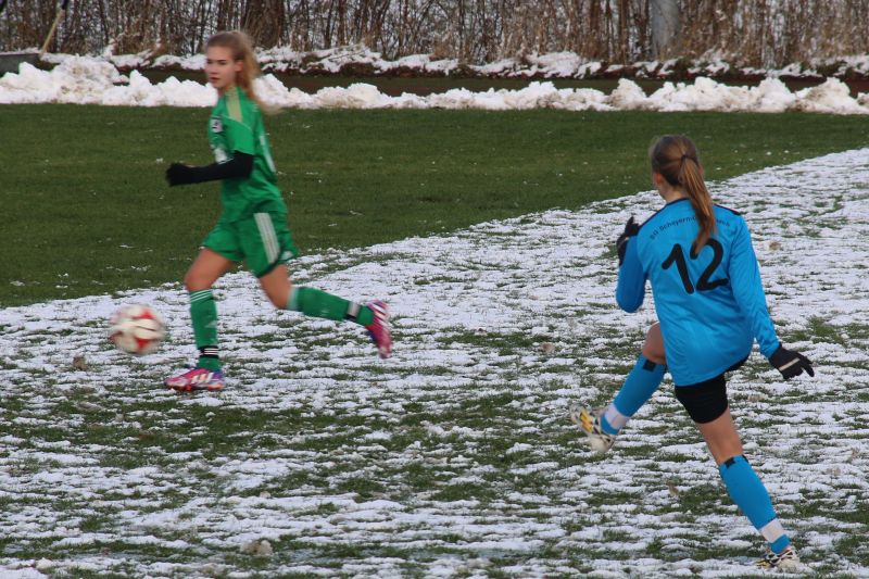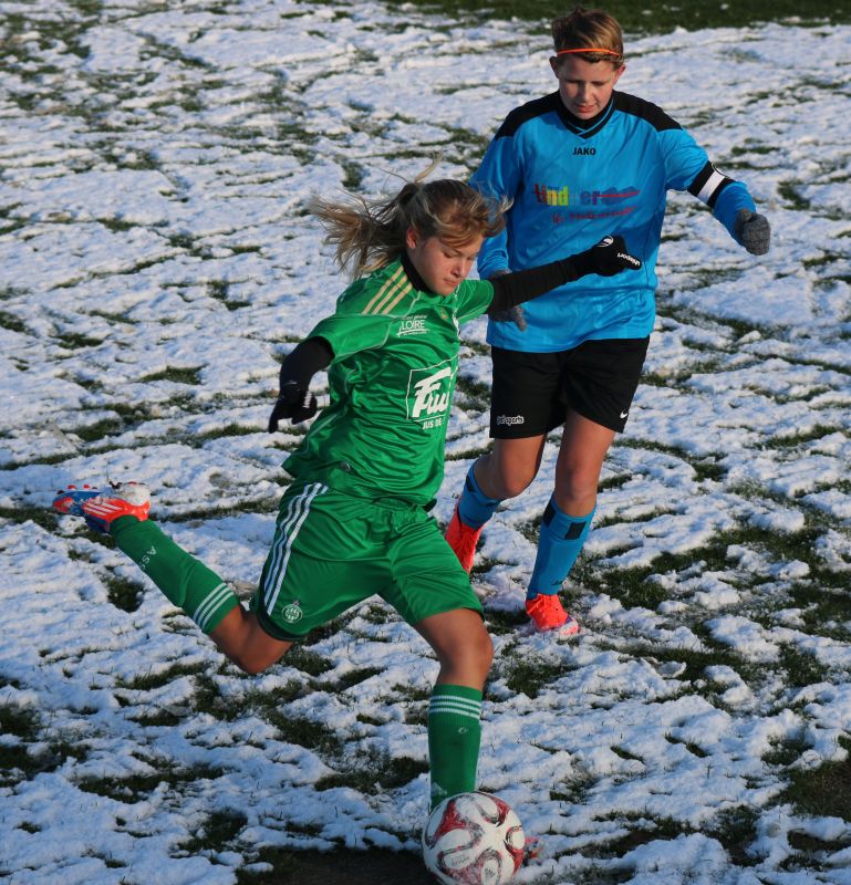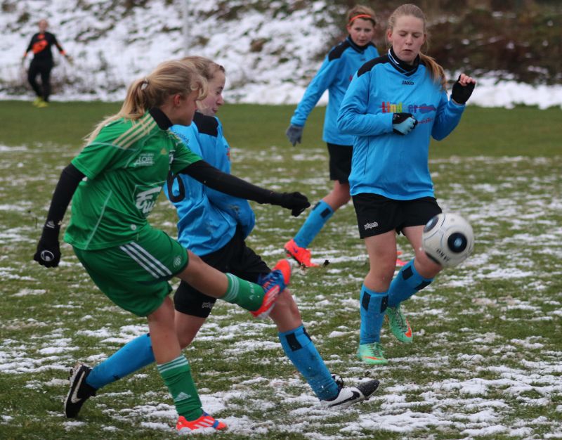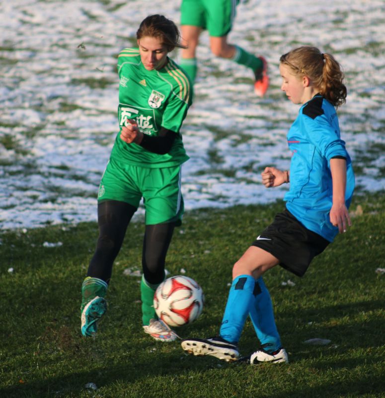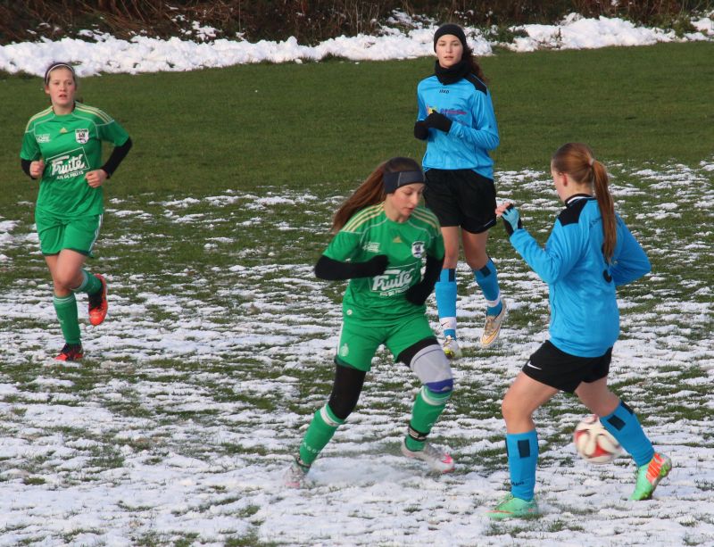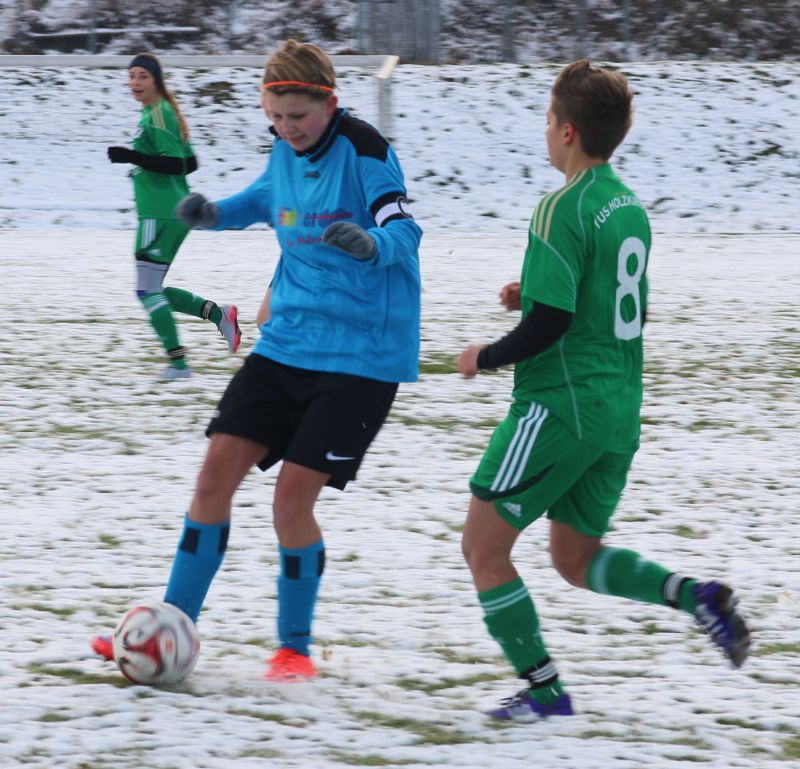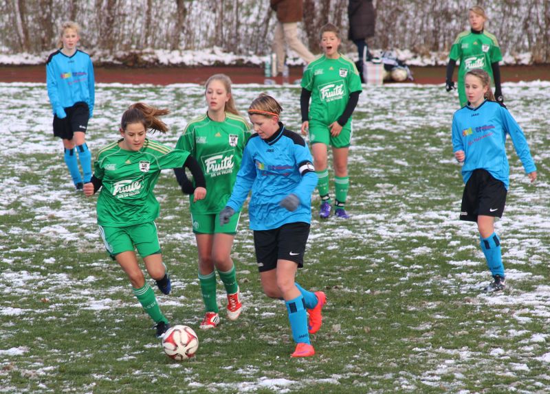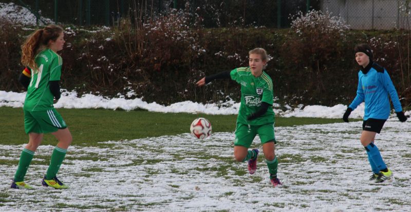 Holzkirchen startete feldüberlegen, die Mädchen der Gerolsbacher Trainer Bosse und Jahnke standen hinten sicher und setzten immer wieder gefährliche Konter. Nachdem Johanna Roscher nach 3 Minuten einen dieser Gegenstöße noch liegen ließ, machte es Lea Lugscheider in der 9. Spielminute besser: sie brach über die rechte Seite durch eine sehr hochstehende Holzkirchener Abwehr und tunnelte die Torhütin zur 1:0 Führung für die Gastgeberinnen. Diese währte aber nicht lange, denn schon 10 Minuten später konnten die Mädchen der Spielgemeinschaft eine Ecke nicht klären und so gelang Anna-Maria Frua der Ausgleich mit einem Schuss aus 16 Metern aus der Drehung (19.). Die Gästeelf blieb am Drücker, das Tor fiel aber erneut auf der anderen Seite; einen langen Ball verlängerte Isabell Orlishausen auf die abseitsverdächtige Lea Lugscheider, die den Ball quer legt, so dass Johanna Roscher nur noch einschieben musste (35.).