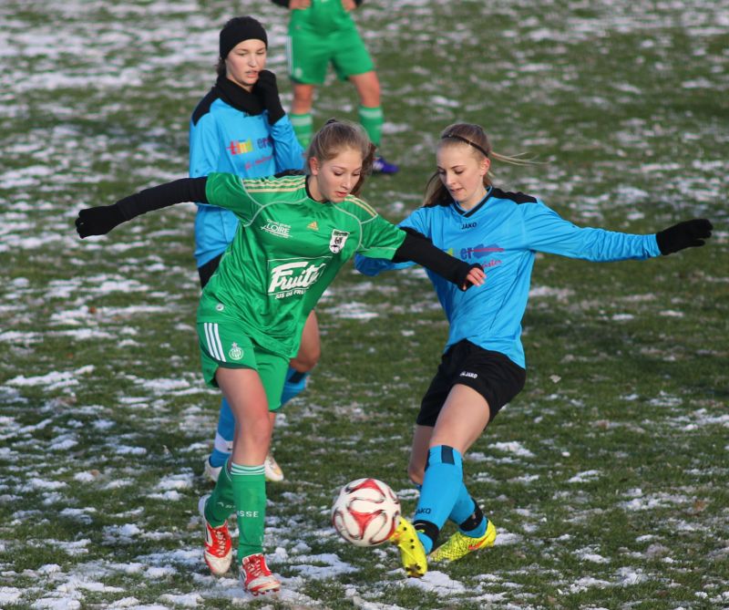 Nandlstadt, 21.11.2015 (hb) Souverän besiegten die U17-Spielerinnen der SG Scheyern/Gerolsbach in der Gruppenphase Ampertal (1:0) und Pulling (3:0). Im Enspiel der beiden Gruppensieger traf das Team dann auf die Spvgg Attenkirchen. Die Mädchen aus dem Landkreis spielten überlegen, trafen des öfteren Latte oder Pfosten, vergaßen darüber aber jedoch, den entscheidenden Treffer zu setzen. Knapp 20 Sekunden vor Spielende - alle hatten sich gedanklich auf ein 7-Meter-Schießen eingestellt - erzielte Attenkirchen bei einem der ganz wenigen Gegenangriffe zum Entsetzen von Mannschaft, Trainern und Fans aber doch noch den Siegtreffer. Der Jahrgang 1999/2000 der SG STS/FCG verabschiedet sich somit nach 4maliger Teilnahme an der Endrunde zur oberbayrischen Hallenmeisterschaft in diesem Jahr von dem Wettbewerb. Das Gute daran: die mit einer nur dünnen Spielerinnendecke ausgestattete Mannschaft hat mehr Zeit für Regenerierung und in einem nicht immer ganz einfachen Umfeld zur Ruhe zu kommen.