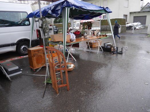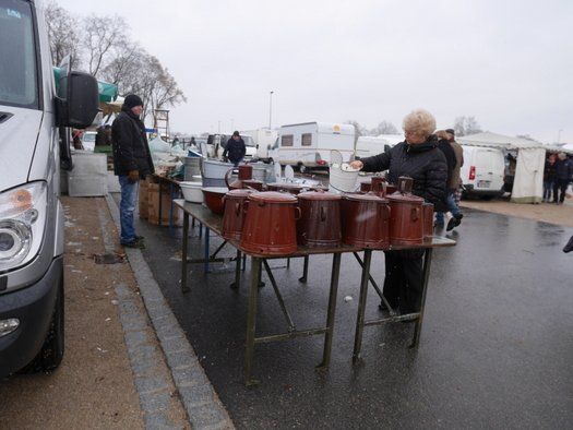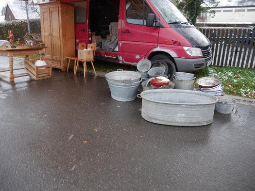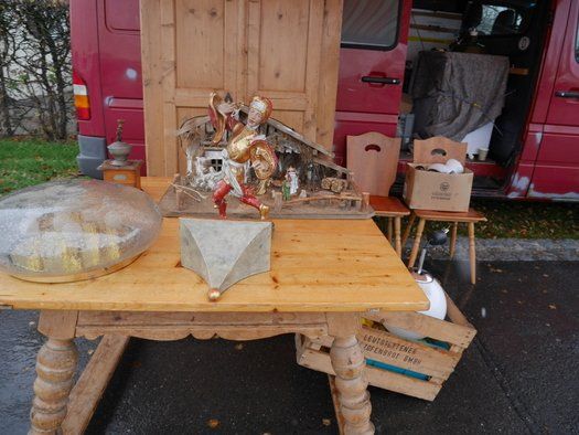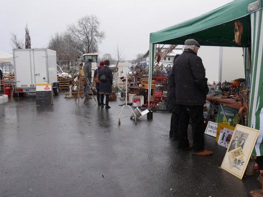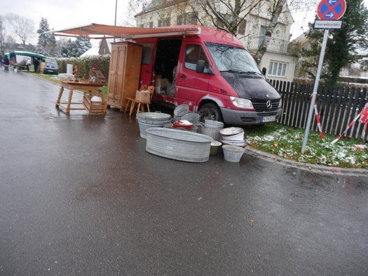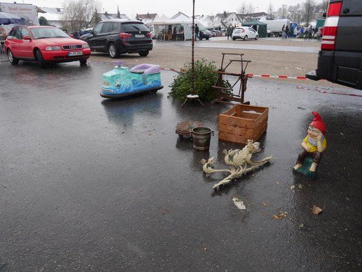 Sicher gibt es empfindliche Altertümer und sperrige Liebhaberstücke, aber die bleiben halt im Hänger und werden auf Verlangen offeriert. Der letzte Flohmarkt im Jahr hat auch immer seine eigenen Preise und die Firanten sind beim Handeln gnädig. Das schlechte Wetter und die geringeren Besucherzahlen drücken natürlich auch noch. Wer sich also auf den Weg in den nasskalten Sonntagmorgen gemacht hatte, konnte am Nachmittag in der warmen Stube seine neuerworbenen Schätze sortieren.