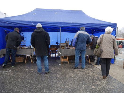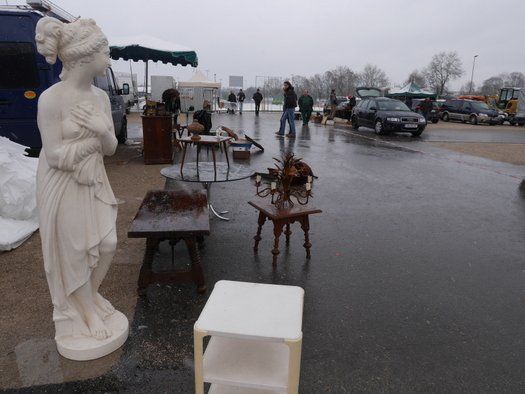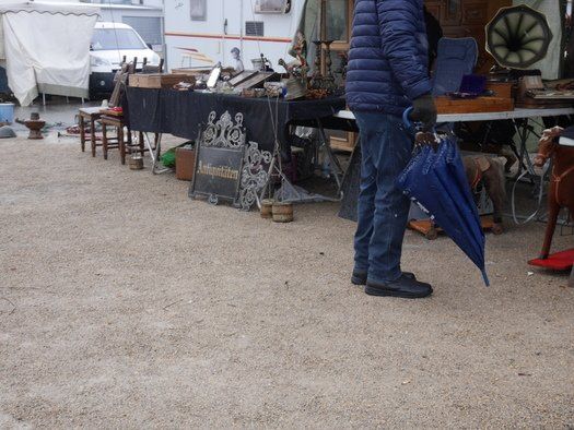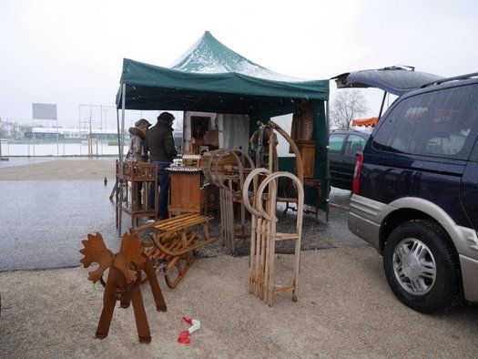 Neuware ist grundsätzlich verboten, außer es handelt sich um frische Pflanzen wie die vor Weihnachten üblichen Mistelzweige, die reißenden Absatz fanden. Kalt war, es saukalt, um bei der örtlichen Meinung der Verkäufer zu bleiben. Am Tag zuvor, an dem normalerweise die Spezialisten vorab die Stände auf Besonderheiten sondieren, hatte es angefangen zu schneien. Was ein echter fahrender Händler ist, der ist zwar nicht begeistert, wenn er seine Schätze gegen die Nässe abdecken muss, doch vorbereitet sind die Profis allemal.
