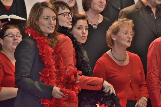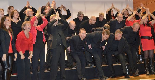 Es fehlte eigentlich nur noch eine Tanzeinlage und schon wäre das Musical fertig. Es hätte vielleicht so ähnlich wie „musikalische Weltreise“ heißen können. Denn das knapp fünfzig Köpfe zählende Vokalensemble verfügt über ein überaus umfangreiches Repertoire, angefangen beim traditionellen Lied über die Klassik bis hin zu Rock und Pop aber auch Jazzelemente einschließend. Und es hat erstaunliche schauspielerische Qualitäten.