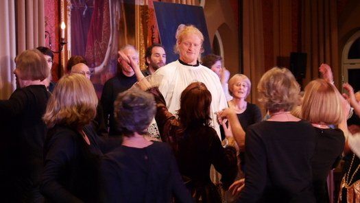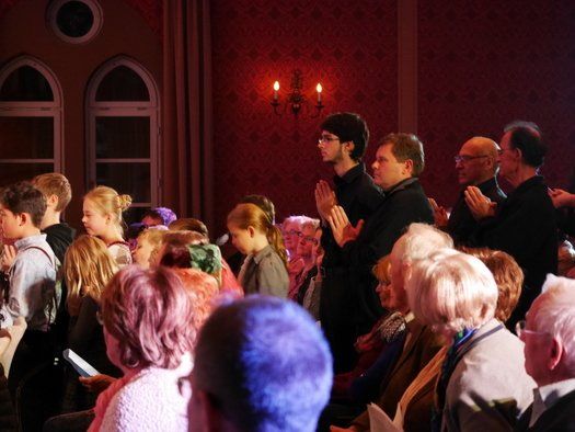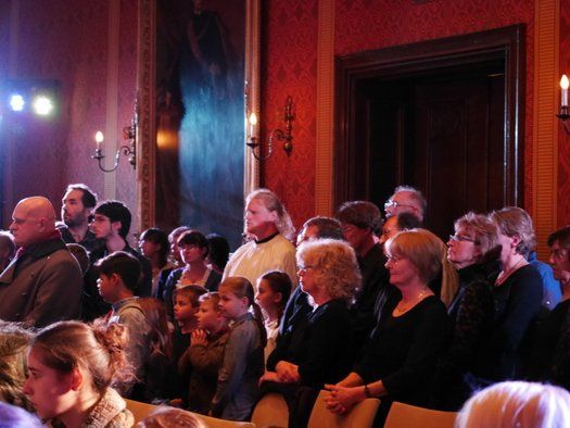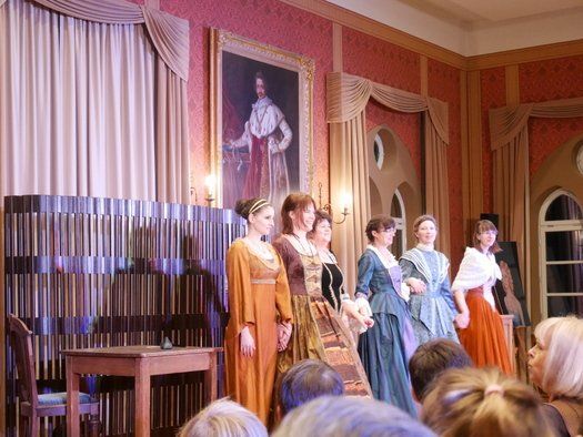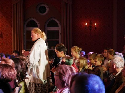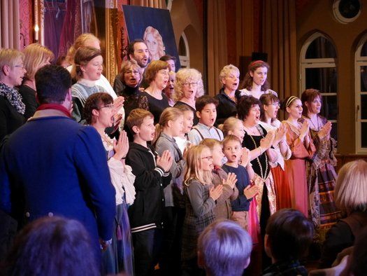 Der ganze Rathaussaal diente als Bühne, viele Auftritte erfolgten von der Seite, dem Haupteingang oder spielten mitten unter den zahlreichen Zuschauern. Massenszenen mit Kinder- und Kirchenchor, bei denen man bekannte Gesichter aus der Liedertafel und des evangelischen Kirchenchors wiederfand, erhoben sich scheinbar spontan aus dem Raum.