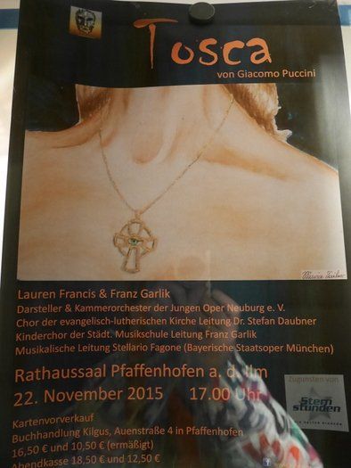 Toska in originaler italischer Sprache, dürfte dem Oberbayern mit barocker Grundeinstellung also liegen. Prächtige Kostüme, eine Geschichte um eine schöne Frau, mit Eifersucht, Drama, Mord, Verrat, Macht, Ohnmacht, Schmerz und Hinrichtung, einfach schöne italienische Oper.