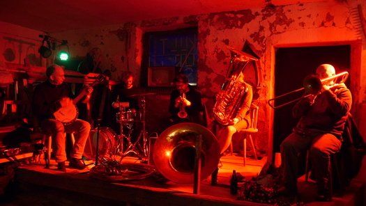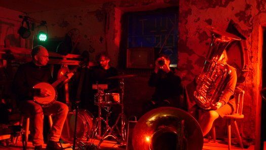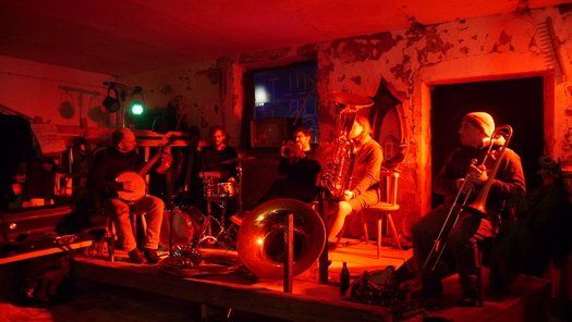 Der Beschreibung in der Ankündigung: „Was dabei entsteht - eine Art folkloristisch-elegischer Rumpeljazz - gibt unterhaltend-melancholische Antworten auf grundlegende, zugleich niemals ausgesprochene Fragen. Das Spannungsfeld zwischen den fünf Spielkollegen und ihren Zuhörern tut das Übrige, so dass der Augenblick die Musik macht und das Publikum unweigerlich ein Teil des Geschehens wird.“ kann ich im Nachhinein auch beipflichten.