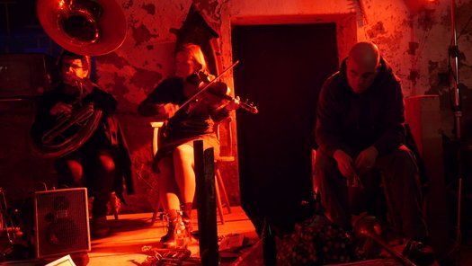 In „Schweinelampenrot“ getaucht, spielen die Akteure den Kuhstall warm, fast schon religiöse Züge haben manche Stücke, das Mantra lässt grüßen. Mit viel Phantasie könnte die ganze Veranstaltung, oder eher Messe, auch in einem tibetanischen Kuhstall, oder besser Tempel, was historisch gesehen dasselbe sein dürfte, stattfinden.