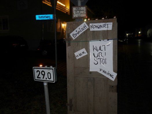 Keinen wundert es also wenn ein verschlafener Kuhstall aus den 60zigern, oder früher, zum „Kulturstoi“ wiedererweckt wird. Der Duft von Rosmarinkartoffeln und Gulasch steigt dem Besucher beim Betreten sofort in die Nase. Kultur braucht Nahrung, Entspannung kann bei niederen Betonbodentemperaturen auch anstrengend werden. Handgezimmerte Sitzbänke und Tische in den alten Kälberboxen, in wohlig weiches Licht getaucht, stehen bereit, um die Band des Abends zu genießen.