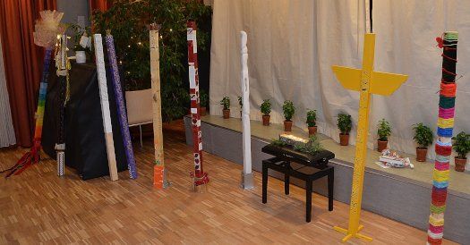 Viel Symbolik steckt in den Stelen der neuen Hospizbegleiter, die sie im Rahmen ihrer Ausbildung ganz individuell selbst gefertigt haben.