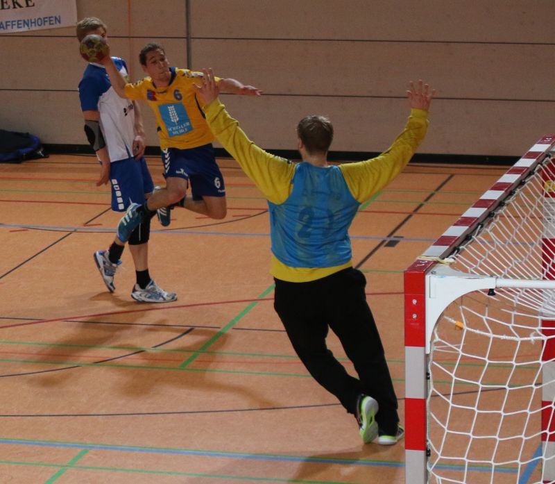 Doch der MTV steckte wieder nicht auf und es kam tatsächlich zum Showdown mit der Chance auf den Ausgleich: exakt mit dem Abpfiff kamen die Gastgeber zum letzten Wurf, bei dem Sebastian Aigner von seinem Gegenspieler gefoult wurde. Die Schlusssirene ertönte, der letzte 7-Meter musste entscheiden, ob es eine Niederlage oder doch ein Unentschieden zu vermelden geben würde. Nachdem zuvor alle 7-Meter sicher verwandelt wurden, konnte Gäste-Keeper Micha Straube, der die ca. 100 Zuschauer schon zuvor einige Male mit seinen Paraden ins Staunen versetzte, den entscheidenden 7-Meter gegen Steve Göthel parieren und bescherte dem SC Eching einen am Ende glücklichen 28:27-Auswärtserfolg. Damit schließen sie in der Tabelle zum MTV Pfaffenhofen auf, beide Mannschaften haben nun 4 Minuspunkte, wobei der MTV Pfaffenhofen bereits ein Spiel mehr als der Verfolger absolviert hat.