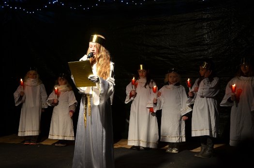Neben den heutigen Auftritten verschiedener Gruppierungen wandelte auch der Nikolaus (Ralf Forster) mit seinem Krampus (Kurt Weiher) zwischen den Budengassen. Und zum Ende hin trat noch einmal die zehnjährige Reichertshofenerin Maria Haberer als Christkind auf die Bühne und verabschiedete die Besucher ehe der Weihnachtsmarkt unter den Klängen des Paartaler Fanfarenzugs für dieses Jahr seine Pforten geschlossen hat.