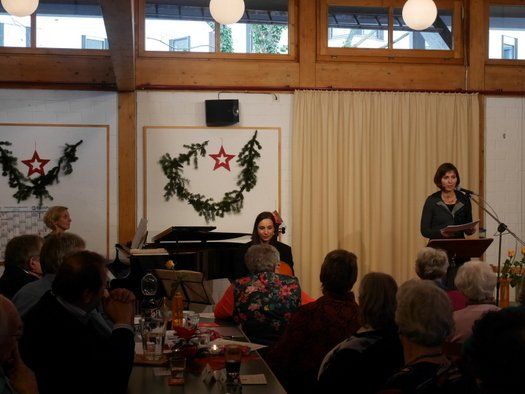 Die Schauspielerin Christina Schäfer hatte berührende, lustige und nachdenkliche Texte und Gedichte zusammengestellt. Begleitet wurde sie dabei von der Pianistin Bärbel Speck-Betz und der Cellistin Marie-Therese Daubner, die die winterliche Atmosphäre durch die hochromantische Musik von Brahms, Grieg, van Goens und Fauré noch verdichten.