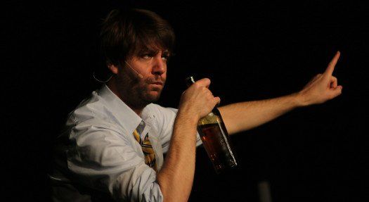 "Theorie der feinen Menschen" heißt das Programm, es ist eine Geschichte über Finanzmärkte, Bankenkrise und Wirtschaftsverbrechen, aber auch Familie, die Bedeutung des Geldes in der Gesellschaft und aktuelle Krisenherde auf unserer Welt. Eine große Bandbreite also, die sich von Wagner auferlegt hat. Den Bogen spannt er weit, anfangs versucht der Besucher angestrengt, Zusammenhänge zwischen einzelnen Szenen herzustellen; schließlich wird aber deutlich, dass der Künstler - sprachgewandt und beeindruckend sicher in seiner Terminologie der Fachbegriffe aus der Finanzwelt - die Häppchen zuvor nur ausgelegt hat, um sie zu einem passenden Ganzen zusammen zu fügen.
