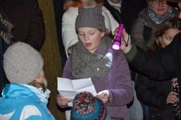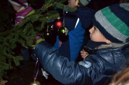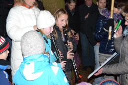 Die Waldweihnach begann mit dem gemeinsam gesungenen Lied „Oh Tannenbaum“ und die kleine Laura erzählte eine kurze Geschichte. Die Kleinsten durften dann mit Gitarrenbegleitung gemeinsam ihr Lied „Was macht denn der Ochs im Stall“ schmettern, danach folgte ein Klarinetten-Duo mit Julia und Nathalie, dann wieder eine Geschichte. So verging der Abend recht schnell, bis die Kleinen sich dann Baumschmuck aus den mitgebrachten Körben nehmen und den Christbaum schmücken durften. Das war für sie natürlich das Höchste. Nach einer weiteren kurzen Geschichte von Katherina endete die Waldweihnacht mit dem gemeinsamen Lied „Stille Nacht“ mit Begleitung des Bläserquartetts. Und da allen langsam etwas kalt wurde und nach dem Rückmarsch der kleine Hunger aufkam, gab es im Feuerwehrhaus Getränke und Stärkung für Groß und Klein.