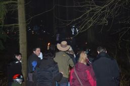 Die gut einhundert Teilnehmer, Eltern mit Kindern, trafen sich am Feuerwehrhaus und nach einigen weihnachtlichen Weisen eines Bläserquartetts der Rohrbacher Blasmusik, marschierten alle Richtung Wald, der knapp einen Kilometer hinter der Kirche liegt. Feuerwehrmänner sicherten die Straße und den Zug der Teilnehmer. Die vielen kleinen Kinder warteten mit ihren Eltern auf das, was da kommen sollte, denn der Weg zum Wald war nicht beleuchtet und recht dunkel war es inzwischen auch schon geworden und der Halbmond ließ sich auch schon durch einige Wolkenlöcher sehen. Die Eltern nutzten die Gelegenheit, mit alten Freunden und Bekannten auf dem Marsch zu plaudern und Fragen der Kleinen zu beantworten. Neugierig waren vor allem die etwas größeren Kinder, denen es gar nicht schnell genug gehen konnte, aber sie taten schon recht cool bei ihren Gesprächen untereinander. Der Zug musste aber immer wieder gebremst werden, damit alle Schritt halten konnten. Schon von weitem sahen alle die Lichter des Christbaumes durch den Tannenwald schimmern. Es wurde fast eine sternenklare Nacht, aber der weiße Nebel waberte schon über Wegen und Wiesen. Beim Wald angekommen, leuchteten Kerzen in Gläsern auf dem Boden allen den ansteigenden Weg nach oben zum Christbaum, um den sich die Kinder mit ihren Eltern dann scharten.