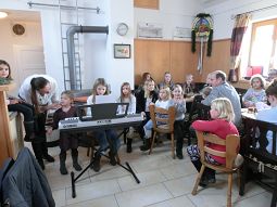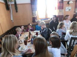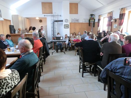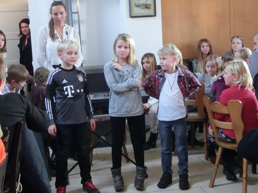 Nach dem Kaffeetrinken hatten die Kinder ihren Auftritt, sie brachten kurze Geschichten und weihnachtliche Lieder dar, bei denen die Anwesenden kräftig miteinstimmten.