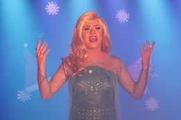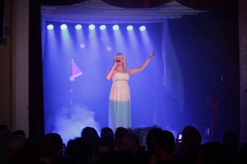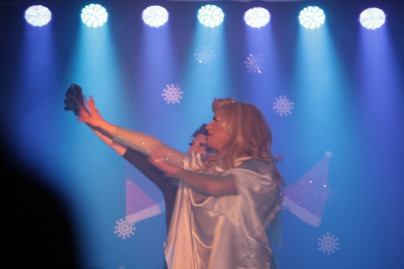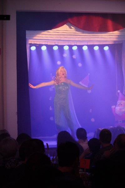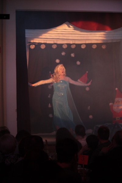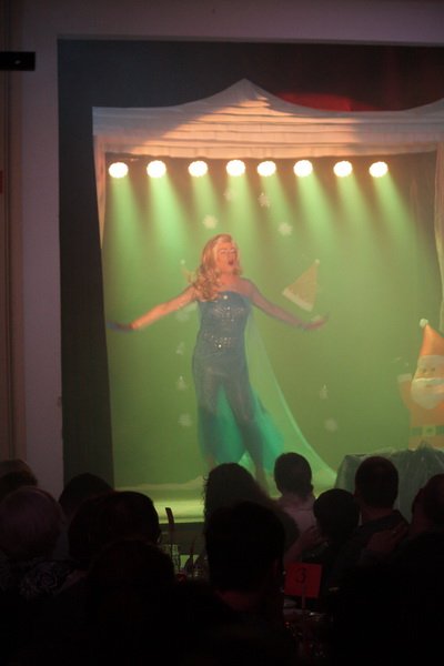Nach zehn Jahren endlich wieder dabei fegt auch Brini Olsen routiniert über die Bühne. „A so a weids Mei“ [bayr.: „So ein großer Mund“ oder „Die traut sich was“] hört man es am Nachbartisch, und sparsam, wie der Bayer spricht, sind beide Bedeutungen gemeint: Besoffenes „Have yourself a merry little Christmas“ oder als Special-Effect-Frau (Schnee- und Eiseffekte zu Resis „Let it go“ aus dem Film „Die Eiskönigin“) – Brini bleibt tiefenentspannt. Umso berückender (mit „b“ wohlgemerkt!) ist da ihre zauberhafte Interpretation von Helene Fischers Aschenbrödel-Lied. Welches Frauenherz wird bei dieser Melodie nicht schwach?
