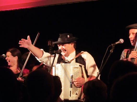 Der Abend begann mit einer Diashow - eine Retrospektive auf die vergangenen Jahrzehnte mit den verschiedensten musikalischen Formationen. Bereits seit 12 Jahren existiert die gemeinsame Band "Pitu Pati" mit Willi Abele, Traudi Siferlinger, Sylvester Denk, Andy Hermann und Stefan Telser. Mit ausschließlich von Willi Abele geschriebenen Lieder, teils noch aus seiner Zeit in Australien und der Südsee in den 80er Jahren, in einer Art "Weltmusik" mit brasilianischen, französischen, Wienerischen Melodien, oft auch in Bayrischem Dialekt, begeistern sie noch immer die Zuhörer. Sie haben zusammen Tourneen durch ganz Europa unternommen und CDs aufgenommen.