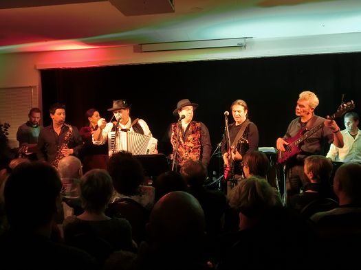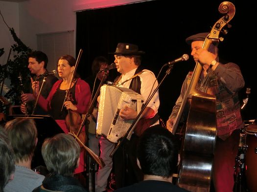Aber an diesem Abend waren auch andere Wegbegleiter Abeles im Bachfeldhaus, immer wieder zu verschiedenen Instrumenten greifend, spielte er in den verschiedensten Formationen, manchmal zu Zehnt auf der kleinen Bühne.