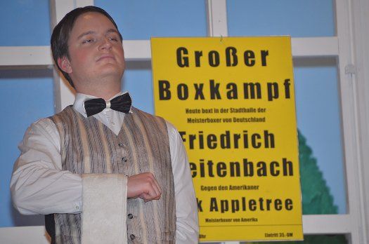 Adelheid will natürlich ihrem Mann beim Boxen zusehen und nun ist Friedrichs Improvisationsvermögen gefragt. Es kommt jedoch zu einer Liebesbekanntschaft zwischen seiner Tochter Lotte (Melanie Kramlich) und dem echten Meisterboxer. Obendrauf mischt sich Wipperlings Frau Amalie (Claudia Ippi) kräftig mit ein und ganz verzwickt wird es, als auch noch die erotische Tänzerin Coletta Corolani (Melanie Piesch) auftritt, die es auf Friedrichs Sohn Fritz (Thomas Ippi) abgesehen hat. Diener Johann (Bastian Benno) beobachtet die immer dichter werdenden Verwicklungen distanziert.