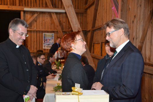 Weitere Festredner waren neben Ingolstadts CSU-Oberbürgermeister Christian Lösel („Ein Macher mit Visionen für die Region.“, nach einem Armenischen Sprichwort: „Auch der wohlerzogenste Wolf wird nie ein Lamm.“) auch Manfred Russer (CSU) als Sprecher der Landkreis-Bürgermeister. Der trug seine Geburtstagsgrüße in Gedichtform vor und sagte unter anderem zu Wolf: „Wir stehen hinter Dir, wenn’s vorne nicht langt.“ Karl Straub, CSU-Landtagsabgeordneter, bemerkte, dass man schon viel Blut und Wasser miteinander geschwitzt habe. Die Flüchtlingsproblematik habe der Landrat hervorragend im Griff. Über „kurze und unkomplizierte Wege“ in der Kommunikation miteinander freute sich Pfaffenhofens Stadtpfarrer Peter Wagner, der die Reihe der Redner dann mit einem Segen abschloss.