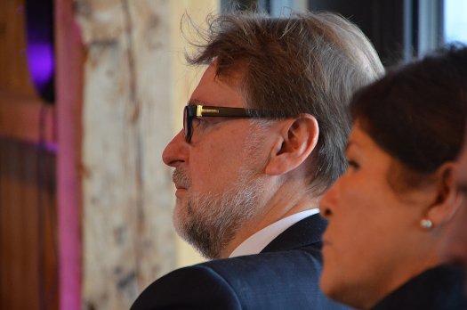 Wolf und seine Frau Gisa lauschen den Festrednern.