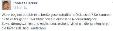 Herker reagierte noch in der heutigen Dienstagnacht auf die CSU-Presseerklärung und schrieb als Kommentar in dem sozialen Netzwerk: "Ich stelle die Frage an die CSU: 'Geistige Brandstifter und Brunnenvergifter oder Sachpolitiker?' Oft macht halt der Ton die Musik."
