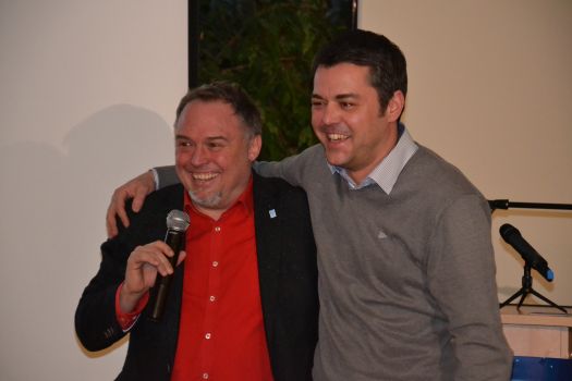 Hermann Schaubeck und SPD-Kreisvorsitzender Markus Käser begrüßten die Gäste und Käser ging in seinem Statement gleich auf die bisherigen politischen Anstöße ein, die bei den letzten Dreikönigstreffen von der SPD gegeben wurden. Als Beispiele nannte er die Initiative zum Bündnis für Familien, Bildungsmonitoring, die kreisweite Windkraftplanung oder die Forderung nach einer Außenstelle des Landratsamtes in Vohburg – alles Punkte, die inzwischen vom Kreistag umgesetzt wurden. Das Jahr 2015 war für ihn ein Jahr, in dem die Politik zurückgekehrt sei, nicht nur in den politischen Gremien, sondern auch in den Familien. Grund dafür war sicherlich das Flüchtlingsthema. Dabei lobte Käser ausdrücklich Landrat Martin Wolf, der dieses Thema umsichtig, konstruktiv und hart an der Sache angepackt hätte. Käser lobte auch Martin Wolfs gute Zusammenarbeit mit den Landkreisbürgermeistern und seine warmherzige Art mit diesem Thema umzugehen – ganz im Gegensatz zur Landesspitze unter Horst Seehofer. Von der CSU-Spitze kämen Töne, die mit christlichen Werten nichts zu tun hätten wie zum Beispiel bei der generellen Ablehnung des Familiennachzugs bei anerkannten Asylbewerbern oder auf Kreisebene die Übernahme von NPD-Slogans auf CSU-Plakaten. Die Führung der Kreis-CSU konstruiere sogar Differenzen zwischen Bürgermeister Thomas Herker und Markus Käser, „doch zwischen unsere Schultern“, so Käser, „paßt kein Blatt“, was er später auch mit dem dazu gekommenen Thomas Herker demonstrierte.