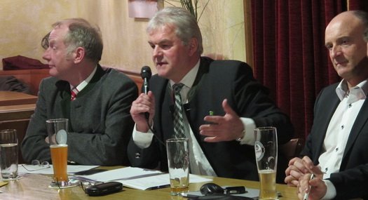Der Vorsitzende des Rings Junger Hopfenpflanzer, Andreas Widmann, konnte an Donnerstag im Reich-Saal auf ein volles Haus stolz sein. Zum Thema „Entwicklung des Hopfenmarktes“ bot er wohlbekannte Referenten auf: Dr. Johann Pichlmaier (HVG/Hopfenpflanzerverband) Peter Hintermeier (Barth/Hopfenwirtschaftsverband) und Pascal Piroué (Hopsteiner), die 90 % der Hopfenvermarktung repräsentieren, also den „Markt“ aus Sicht des Pflanzers.