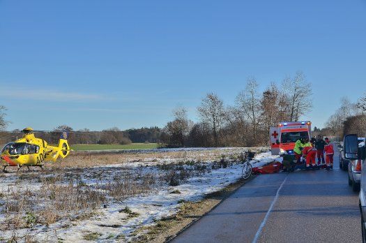 Eisglätte auf der Straße war nach Einschätzung der Polizei die Ursache für den schweren Sturz einer Radfahrerin am heutigen späten Freitagvormittag. Die Frau musste vom Notarzt versorgt und mit dem Rettungshubschrauber in eine Klinik zur weiteren Behandlung gebracht hat werden.