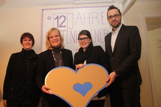 Tankred Pörner (re.) und Theresia Wiesner (mitte) überreichen Petra Eidenberger (mitte) und Silva Hiestand (li.) eine Spende in Höhe von 1000 Euro.
