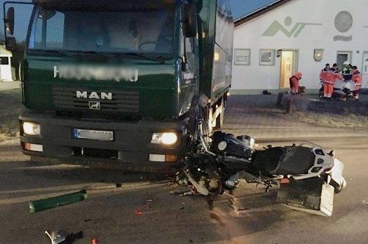 Verunglückt bei einem Verkehrsunfall ist am heutigen Donnerstagmorgen gegen 7 Uhr ein Motorradfahrer aus Baar-Ebenhausen als er gegen einen nicht vorfahrtsberechtigten Lastkraftwagen gefahren ist. Neben der Freiwilligen Feuerwehr Reichertshofen waren der BRK-Rettungsdienst und die Beamten der Polizeiinspektion Geisenfeld im Einsatz.