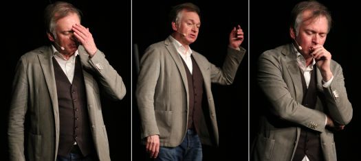 Mit Claus von Wagner klang das alte Jahr fulminant aus, Christian Springer und damit der Premiere 2016 steht dieser Qualität in nichts nach. Kurze Ansage, auf der Bühne nichts weiter als ein Stuhl, der Künstler betritt die Bühne und stellt sein Glas Fruchtsaftschorle neben eben dieses einzige Utensil ... um das Getränk aber über das gesamte Programm hinweg zu ignorieren. Kein Wunder, hat er doch zwischen seinen Textpassagen nicht einmal richtig Zeit zum Luftholen, geschweige denn zum Trinken. Zwischenzeitlich ist es dem Publikum fast unmöglich, allein nur den Worten zu folgen, die von der Bühne in den Saal gefeuert werden, bezüglich der dahinter steckenden Anspielungen und Hintergedanken ganz zu schweigen.