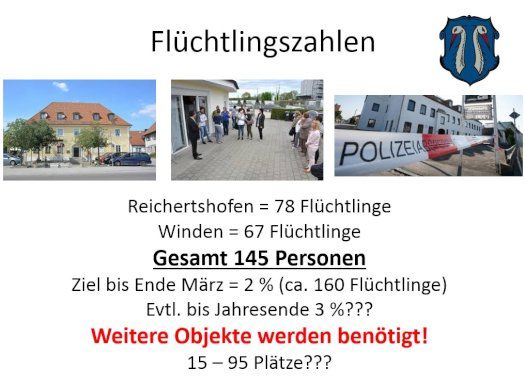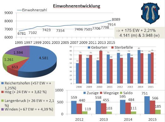 Mit der Entwicklung der Einwohnerzahlen startete Franken seine über einstündige Darstellung des Marktes im Rückblick auf das vergangene Jahr. Mit einem Plus von 175 Einwohnern sei 2015 einer der stärksten jährlichen Zuwächse überhaupt zu verzeichnen gewesen. „Mittlerweile ist die Einwohnzahl auf 8.089 Personen angestiegen.“ In den vergangenen acht Jahren sei die Zahl der sozialversicherungspflichtigen Einwohner zum 30. Juni auf 3.272 gestiegen. „Ein Plus seit 2008 von knapp 500 Personen! Ich gehe davon aus, dass noch nie zuvor so viele Einwohner des Marktes Reichertshofen in Beschäftigung waren.“