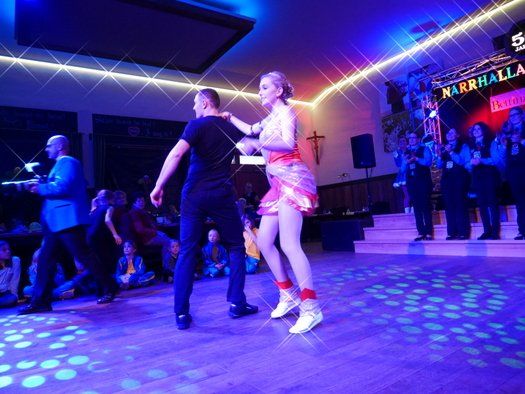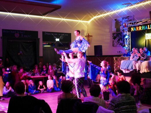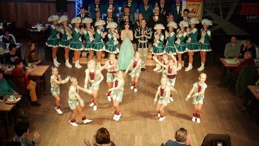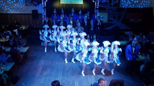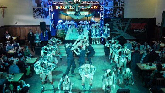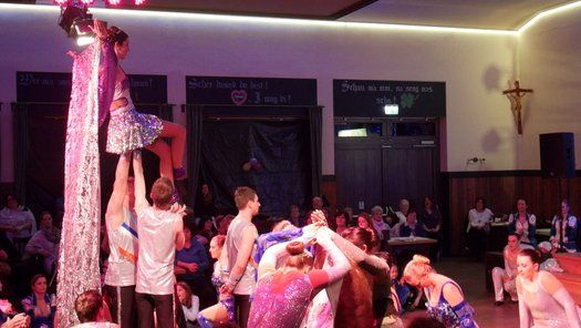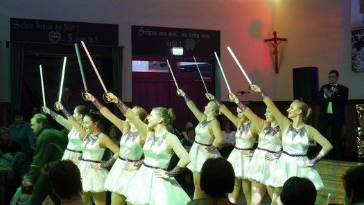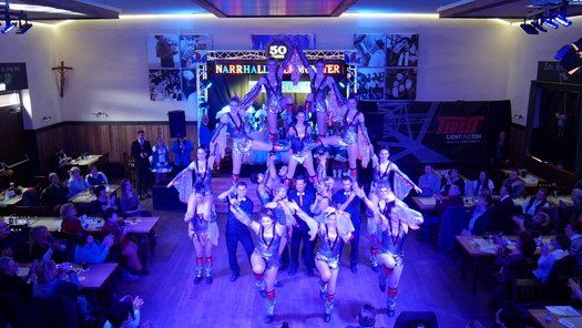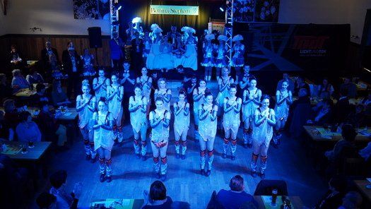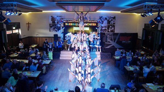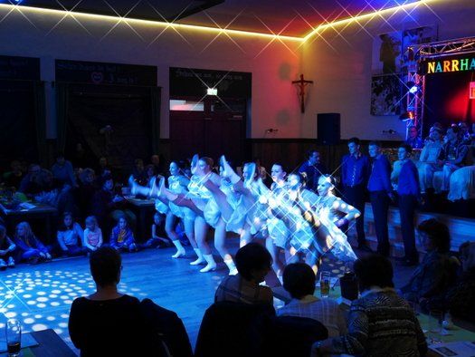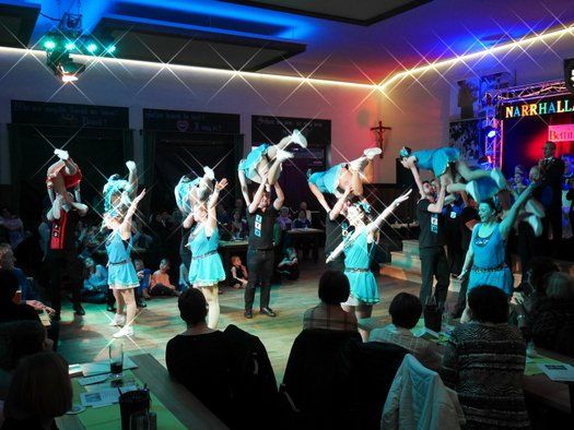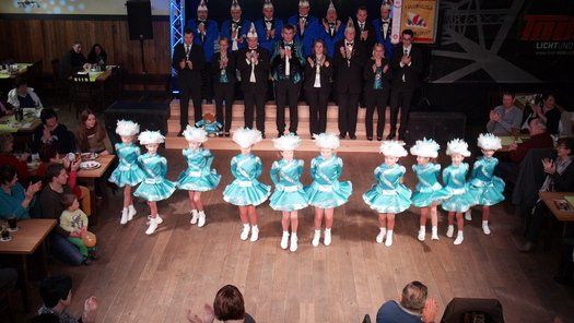 Von dem ganzen Trubel vor der Tür, oder in den beiden Umkleidebereichen, bekamen die vielen Besucher im Saal kaum etwas mit. Sie hatten das Privileg, ganze acht Garden und Tanzformationen in einem Schwung durch zu genießen. Orden wurden getauscht, Zepter gestohlen und ausgelöst, Sekt für die Narrhalla spendiert, ja wer den Jahresorden nicht dabei hat darf auch zahlen, Kinder getröstet und letztendlich getanzt bis unter die Decke.