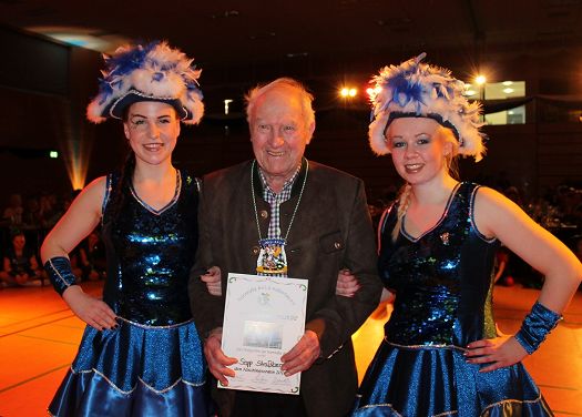 Das Ehrenmitglied und zugleich Vereinswirt Sepp Straßberger hat natürlich auch noch seinen Orden erhalten. Danach ließ er es sich nicht nehmen, mit Enkelin Evi den Ordenswalzer zu tanzen.