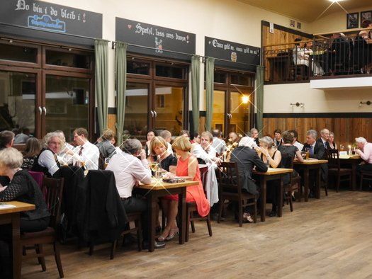 In feinsten Zwirn die Herren und im edlen Abendkleid die Damen, wie es sich gehört, hatte sich die Boheme der Pfaffenhofener Gesellschaft eingefunden um zu feiern. Dem schlichten Male, folgte ein wahrer Menschenauflauf zur großzügigen Tanzfläche. EM2 - die Tanzformation der Dellnhauser Musikanten spielten in gewohnt professioneller Weise auf, vom Tango über Walzer bis zum Fox, wohl dem, der seine Tanzstunden noch in den Beinen hatte.