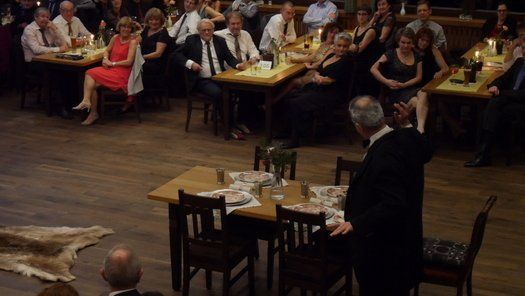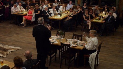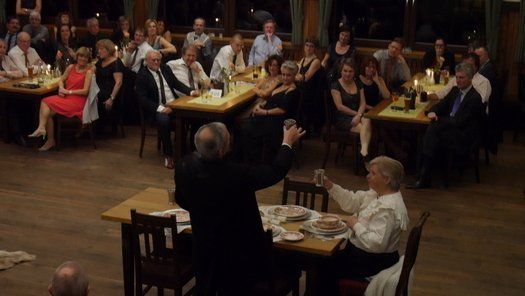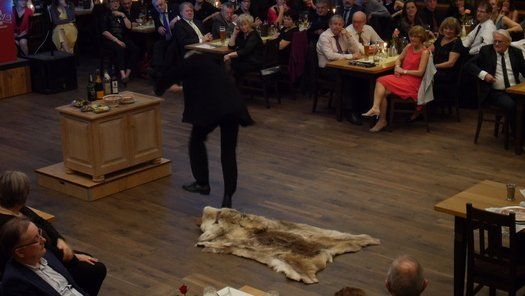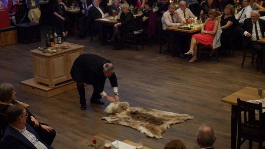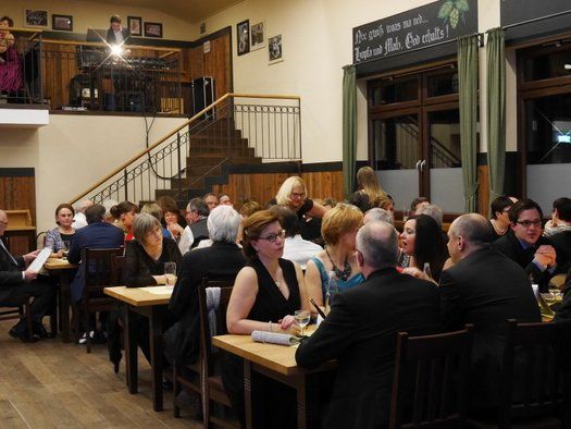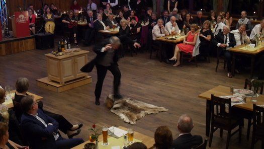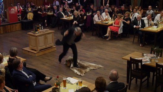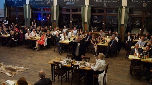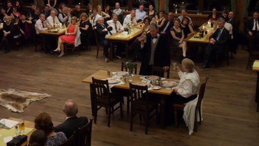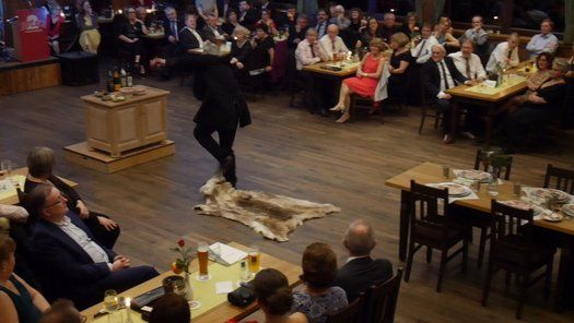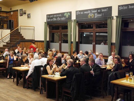 Normalerweise gibt es im Fasching eine maskierte Probe, bei der neben dem Singen auch noch Kabarett der feinen Art geboten wird. Diesmal hatte man sich entschlossen, einen grandiosen Sketch in der Tanzpause zum Besten zu geben. Gudrun Küster und Markus Wagner glänzten mit "Dinner for one", so kurz nach dem Jahreswechsel geht das schon in Ordnung. Tosender Applaus für textsicheres Spiel und perfekte Interpretation, es kann zwar nur ein "Dinner for one" geben, aber diese Vorstellung war schon sehr nahe am Original, genial schee!