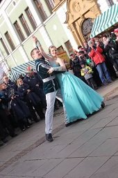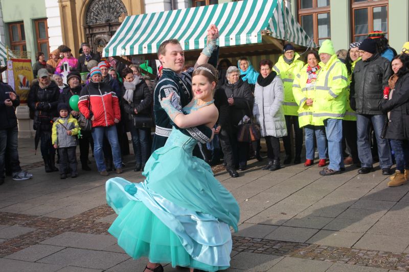 Das Highlight am Vormittag: der Auftritt der Narhalla Ilmmünster. „Es freut mich natürlich sehr, dass wir zum Auftakt der heißen Faschingszeit wieder hier in Wolnzach vor dem Rathaus auftreten dürfen“, so Präsident Martin Schlicht. Und so heizten die Mädels und Jungs um das Prinzenpaar Bettina I. und Stephen III. den Wolnzachern mit einem zackigen Marsch, einem flotten Walzer und einem von Akrobatik getragenem Showteil gehörig ein. Der kalte Wind war schnell vergessen und passend zu Musik wurde in die Hände geklatscht. „Das ist doch wirklich ein schöner Auftakt in die närrische Zeit“, so Bürgermeister Jens Machold. Doch neben allem Spaß, gab es auch viel Anerkennung seitens der Gemeinde: denn wie schon im vergangenen Jahr so wurden auch in diesem wieder Orden an Wolnzacher verliehen, die sich in besonders um ihre Gemeinde verdient gemacht haben.